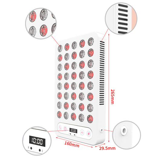 The G40 is a powerful red and near-infrared light therapy device designed for home and office use. Equipped with 40 LEDs, the device evenly emits 660nm red light and 850nm near-infrared light, with high power and targeted results. The G40 uses a pulsed and dimmable design to provide more precise and personalized treatment options. The device is easy to operate with a built-in timer and foldable desktop stand, and the ultra-thin design makes it easy to store and carry. With the choice of red light, near-infrared light, or a combination of both, it not only improves skin health and overall energy, but also promotes muscle recovery, accelerates wound healing, and effectively relieves pain and inflammation.