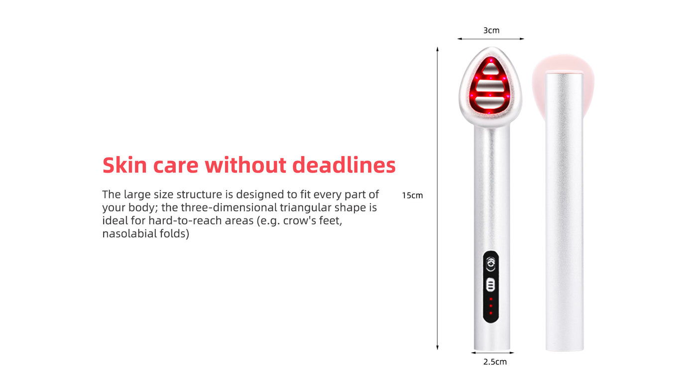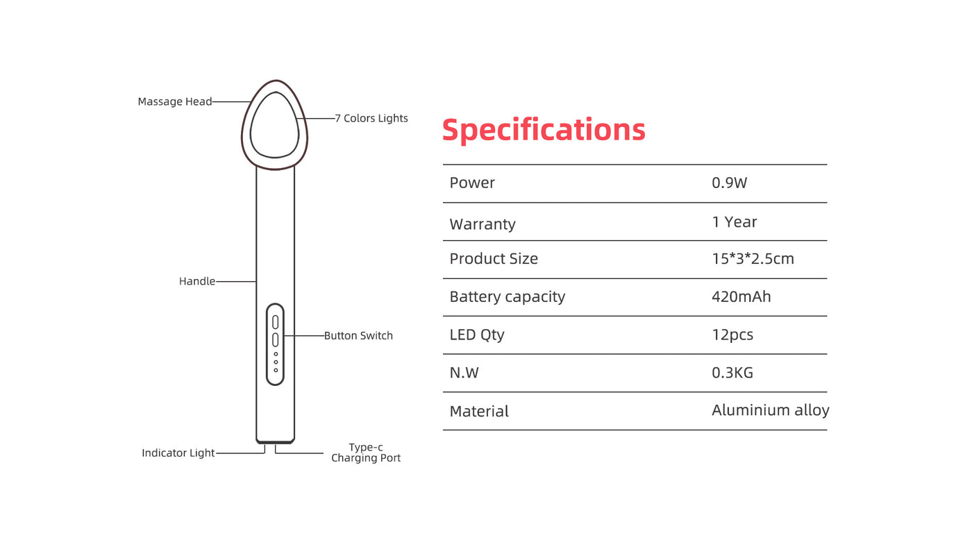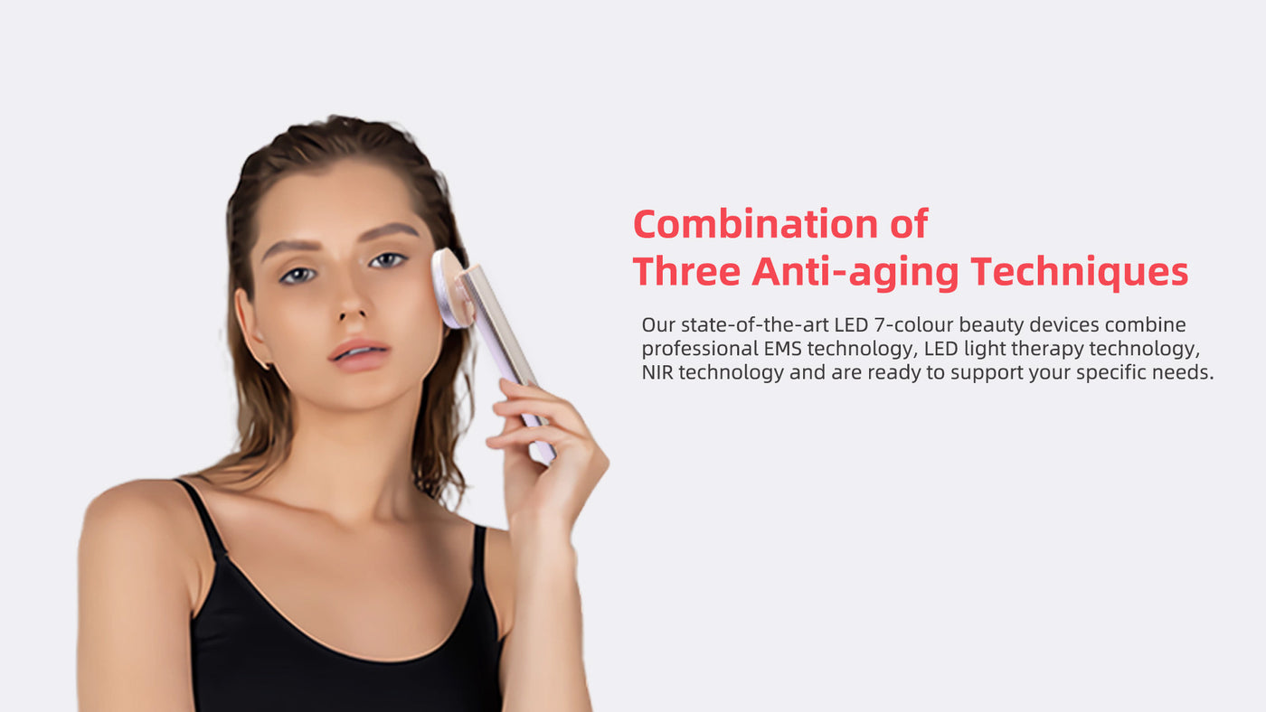 The Seven Color Beauty Device is a lightweight and efficient personal care device. Its unique triangular appearance ensures a smooth massage without dead angles and uniform phototherapy effect. It is equipped with three adjustable EMS microcurrents and 38-42β constant temperature hot compress function, which effectively promotes muscle firming and blood circulation. The 7-color LED light accurately repairs different skin conditions, and can be used in vibration or silent mode. The electrode guide head deeply cleans pores and removes dirt through positive and negative ions. The Seven Color Beauty Device is light and easy to hold, and you will not feel tired even if you use it for a long time. It is an ideal choice for your daily skin care and provides professional-level care effects.