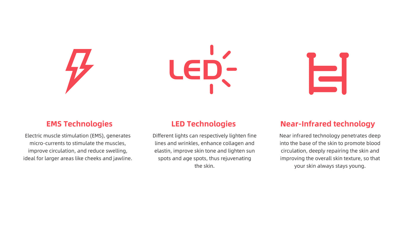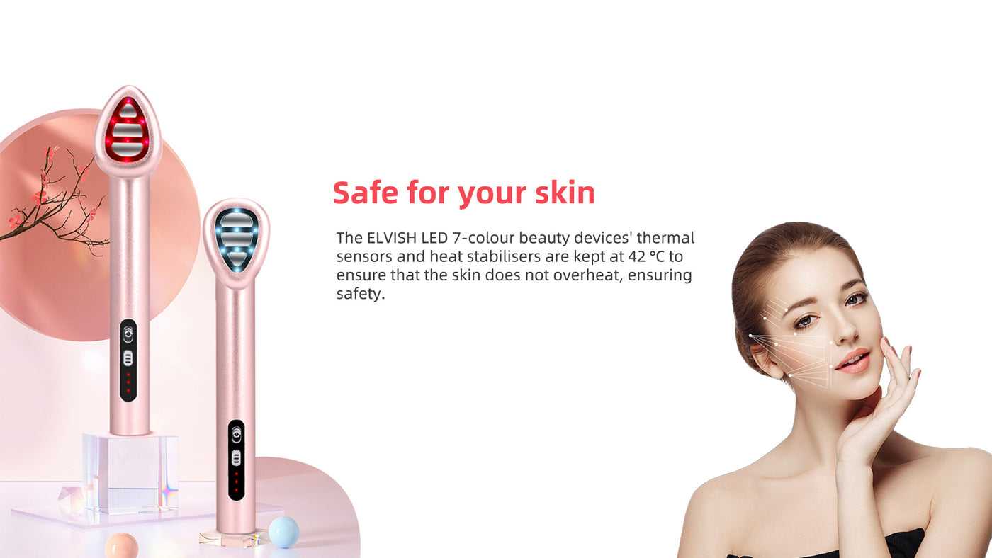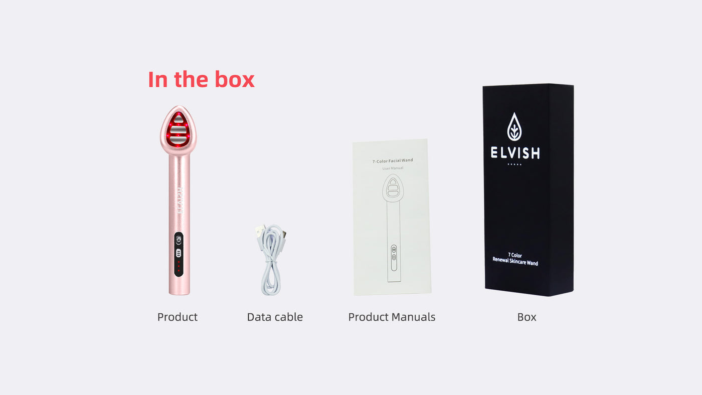 The ELVISH EMS seven-color beauty device features seven-color light therapy to deeply revitalize the skin, current therapy to enhance serum absorption, vibration massage to reduce puffiness, and therapeutic heat to make the skin glow. Once used, it will become your indispensable skin care helper.