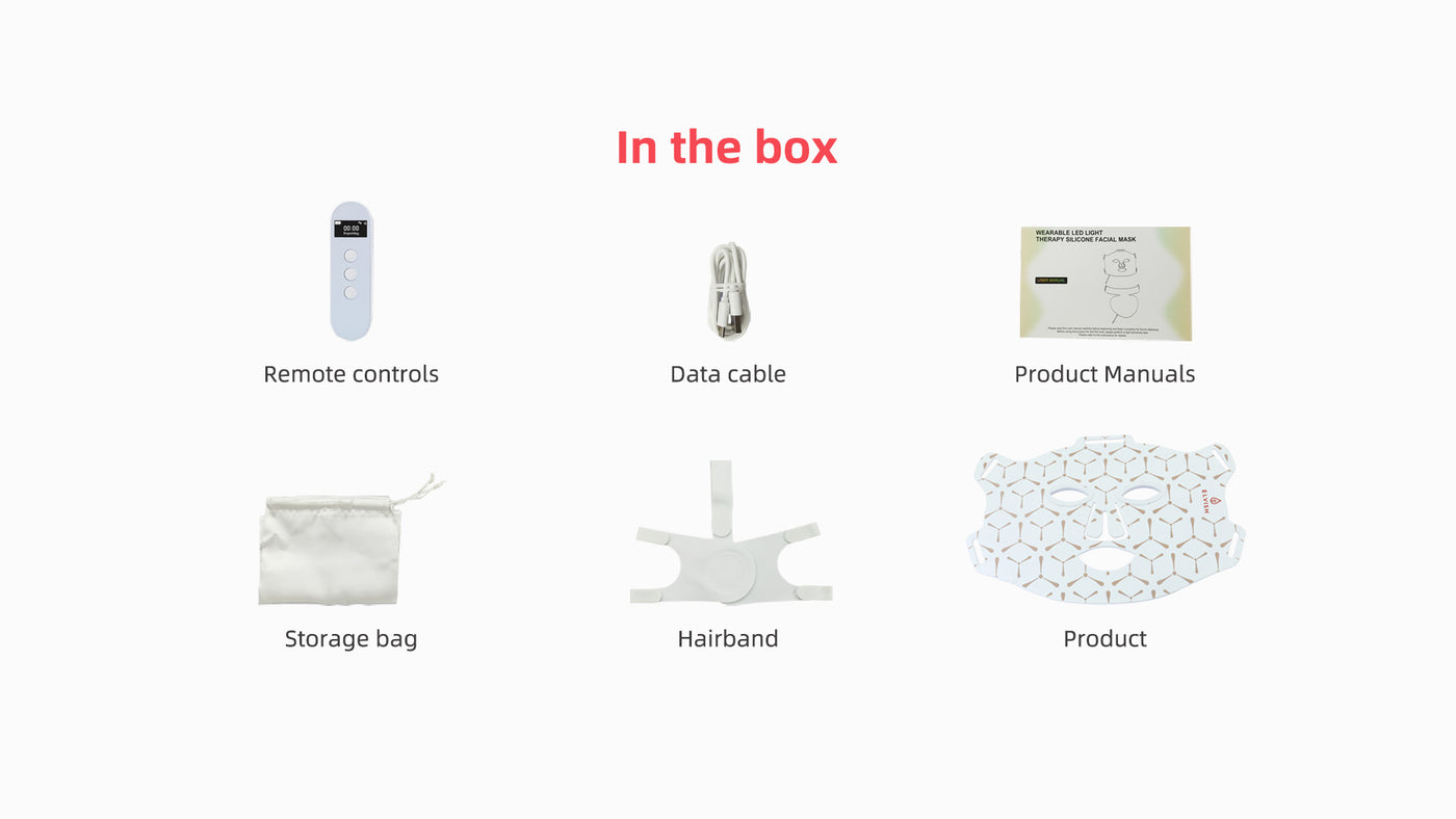 The wearable LED light therapy silicone facial mask is a household wearable and rechargeable photon rejuvenation beauty device. The surface structure of this product is composed of medical silicone material, which is convenient and easy to use. It is foldable and portable, and it can be fixed with the adjustable buckle according to different faces, suitable for different groups of people.